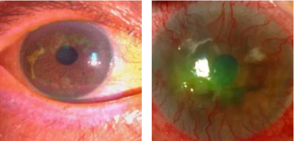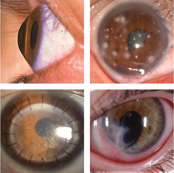 2)眼表疾病4:巩膜镜在角膜上方形成的硬性穹窿及镜下的水液层,使得角膜完全被液体包裹,不仅能给角膜提供机械保护,还能保持角膜湿润,防止角膜干燥。巩膜镜这个独特的优势使得其能广泛应用于眼表疾病的辅助治疗。如: